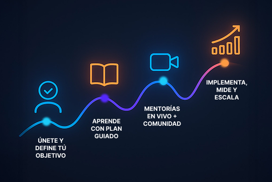 Aprende a lanzar, optimizar y escalar tu e-commerce con estrategias probadas, comunidad experta, formación táctica, soporte real y un ecosistema que no te deja solo.